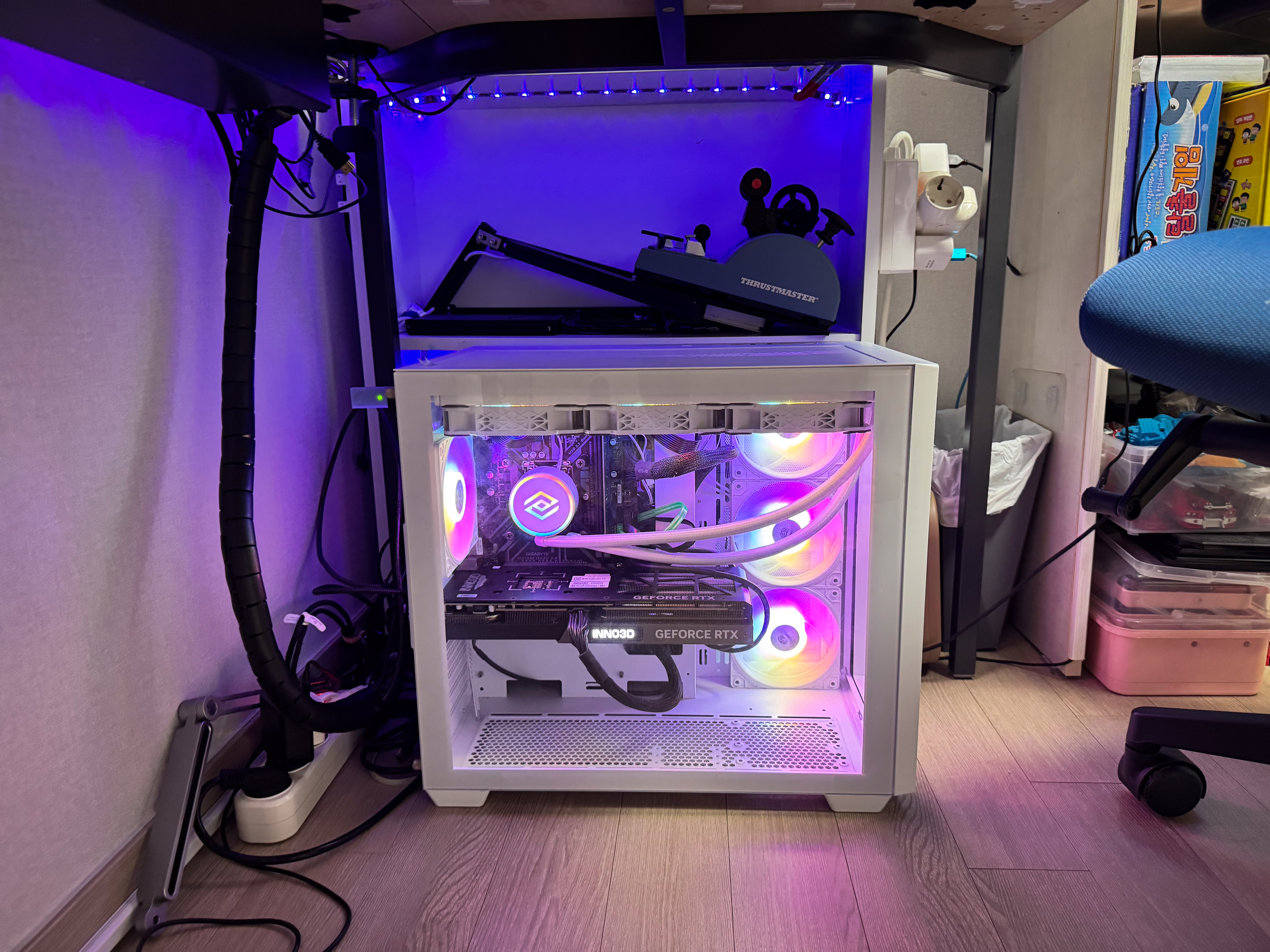 보드는 그냥저냥 쓰는 MSI보드이고 CPU는 인텔 i9 - 9900K 커피레이크 입니다. RAM은 32기가 한장짜리 붙어있꼬 다행히 그래픽카드는 그래도.. RTX 4070TI 중고로 구매해서 업그레이드 했습니다. 수냉식 케이스는 음... 얼추 2년 넘게 사용중입니다. 케이스와 수냉이 있어보여 구축해보았는데.. 이게.. 수냉이 또 냉각제 보충방식이 아닌것은 대략 3년 정도 내구연한을 가지고 있다고 합니다. 그래서 요녀석 수명 다하면 공냉식으로 갈아탈 예정입니다.