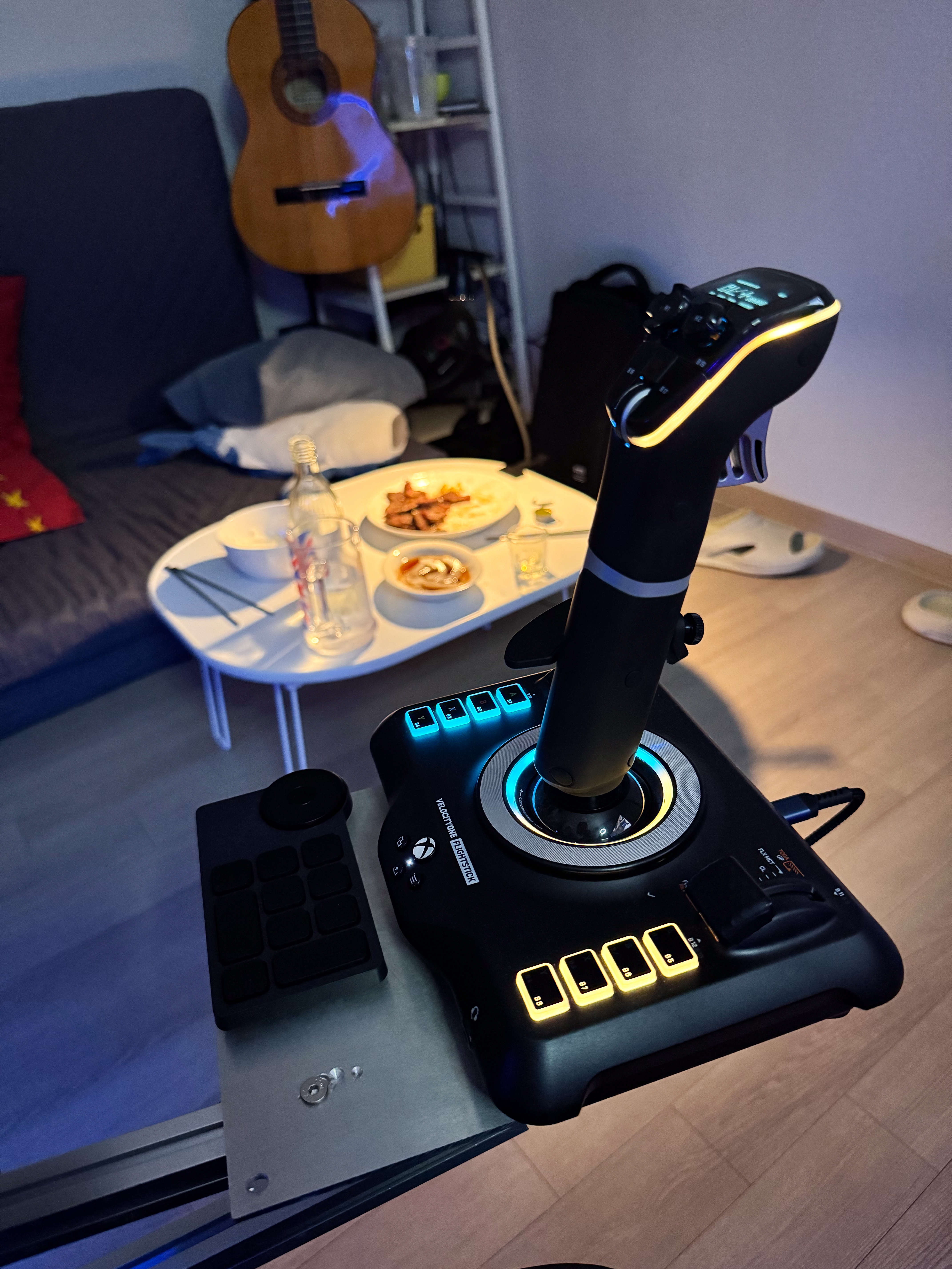 메타퀘스트로 VR비행할때는 벨로시티원 스틱을 사용하며 폐달도 어지간하면 쓰지 않습니다. 아무래도 VR인경우 다양한 하드웨어를 이용하기 힘든 환경이라 이정도 셋팅이 최선인듯 합니다.